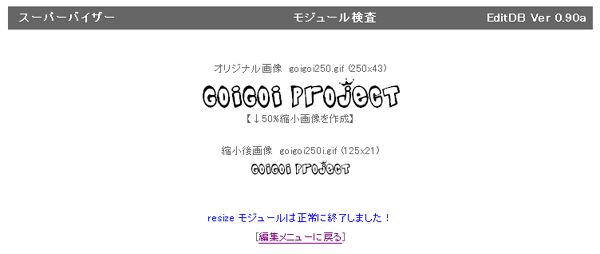 - 「リサイズモジュールは正常に終了しました!」が表示されればリサイズモジュールを使用することができます。